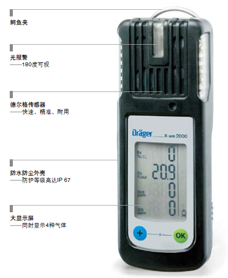 德爾格傳感器代表創(chuàng)新技術(shù)的高端水平, X-am 2000四種氣體檢測儀配備新研發(fā)的迷你型傳感器。功能強大,反應迅速,使用壽命長達5年。